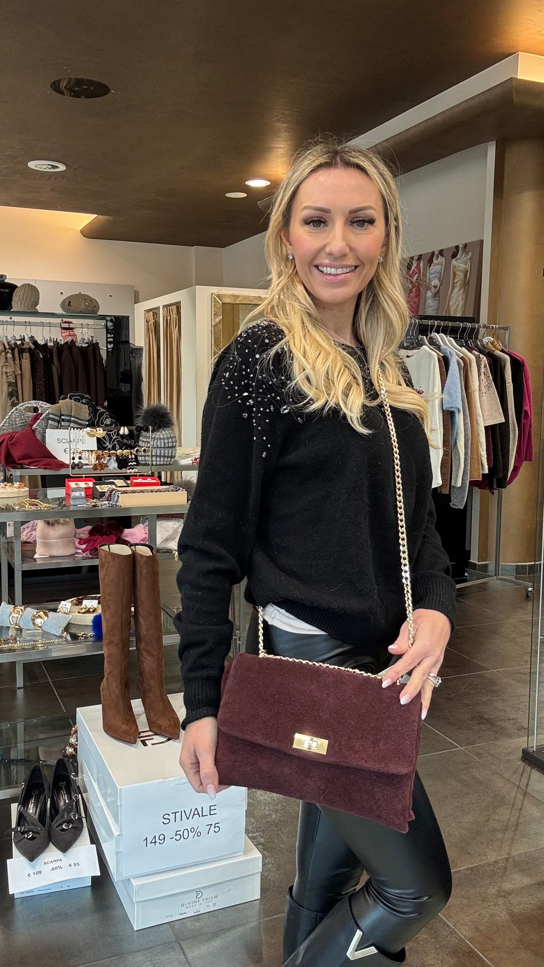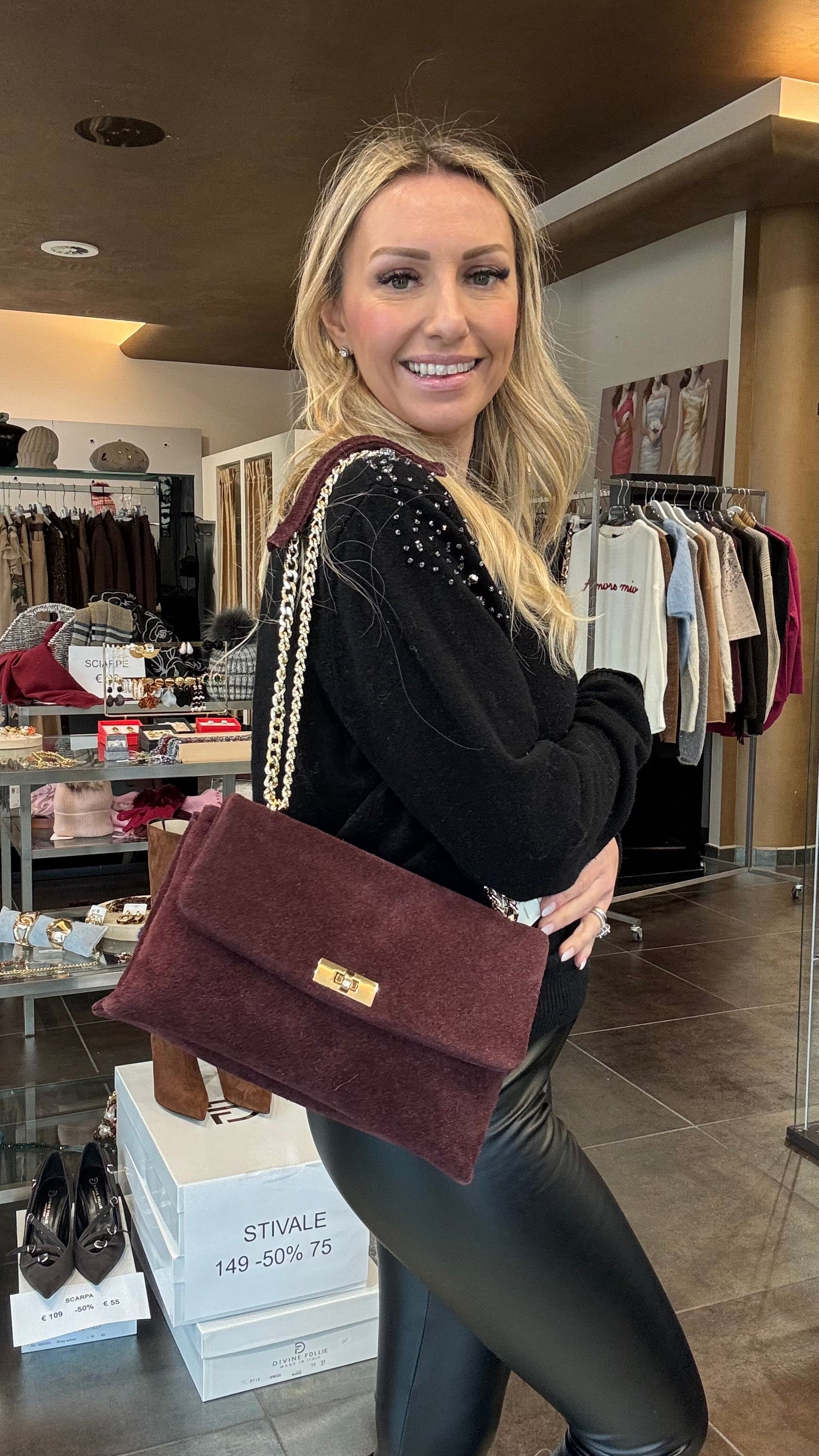 Borsa con tracolla metallo dorato in suede
