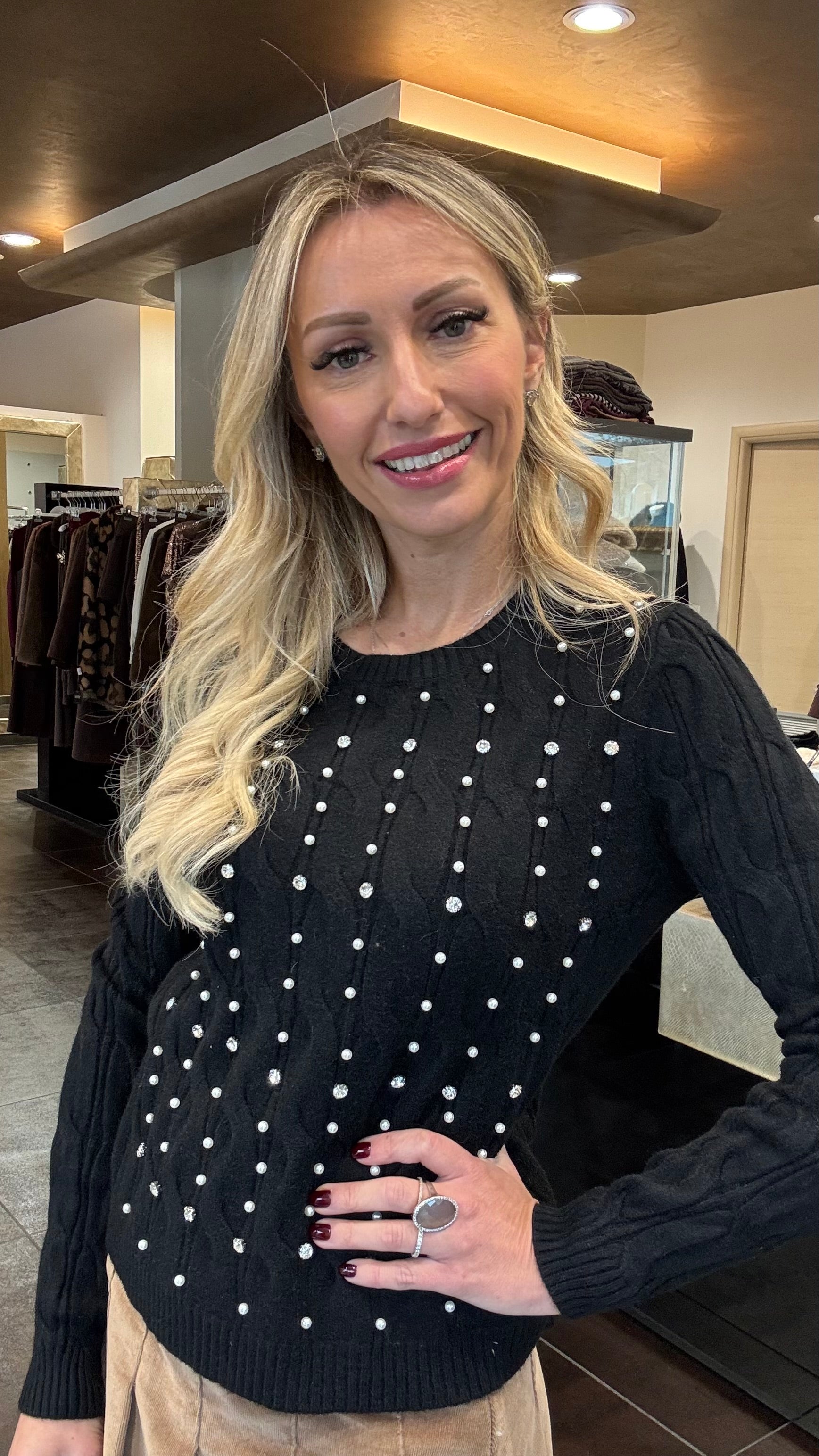 Scatola in latte disegno natalizio + Maglia nera con applicazioni