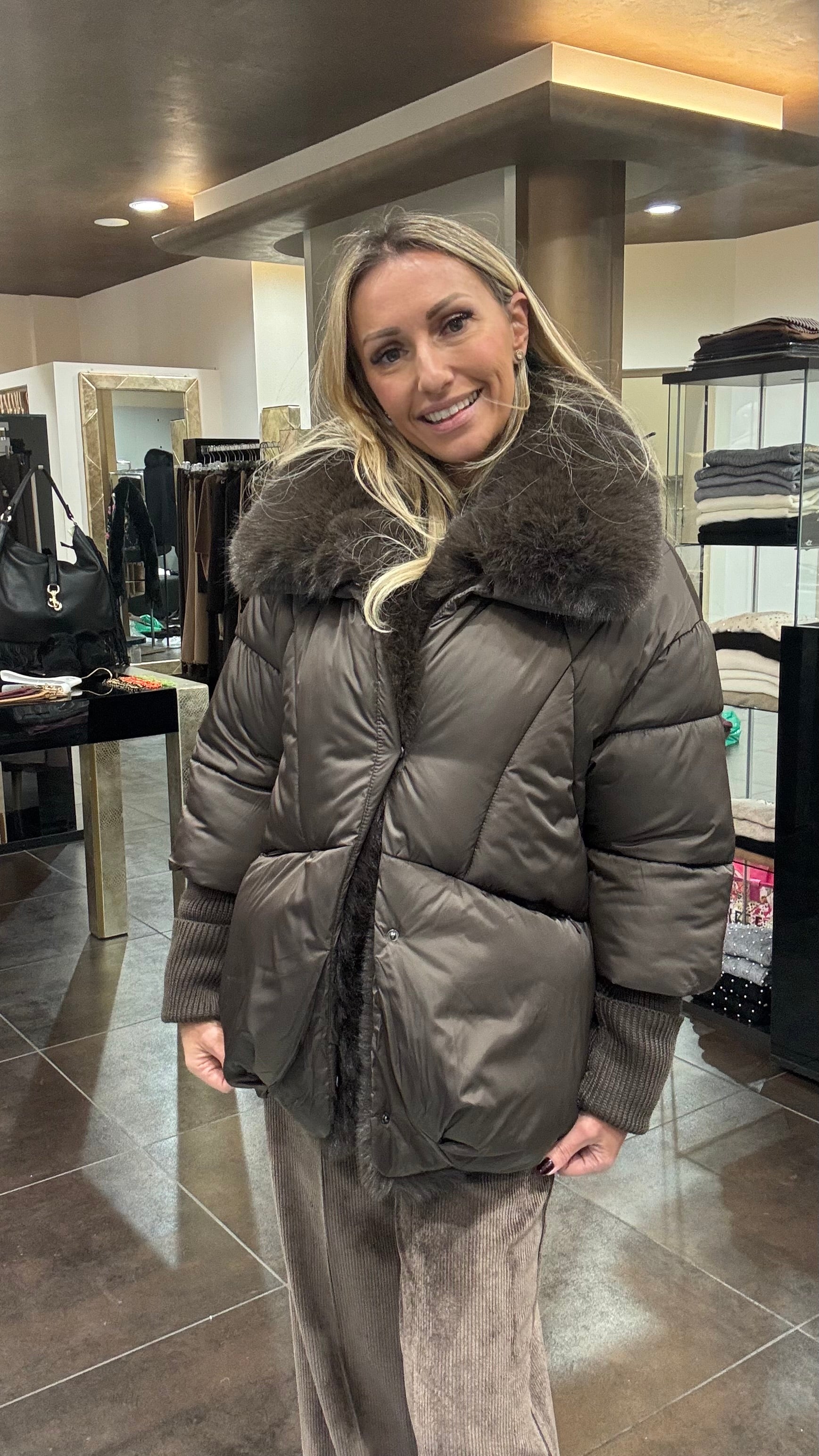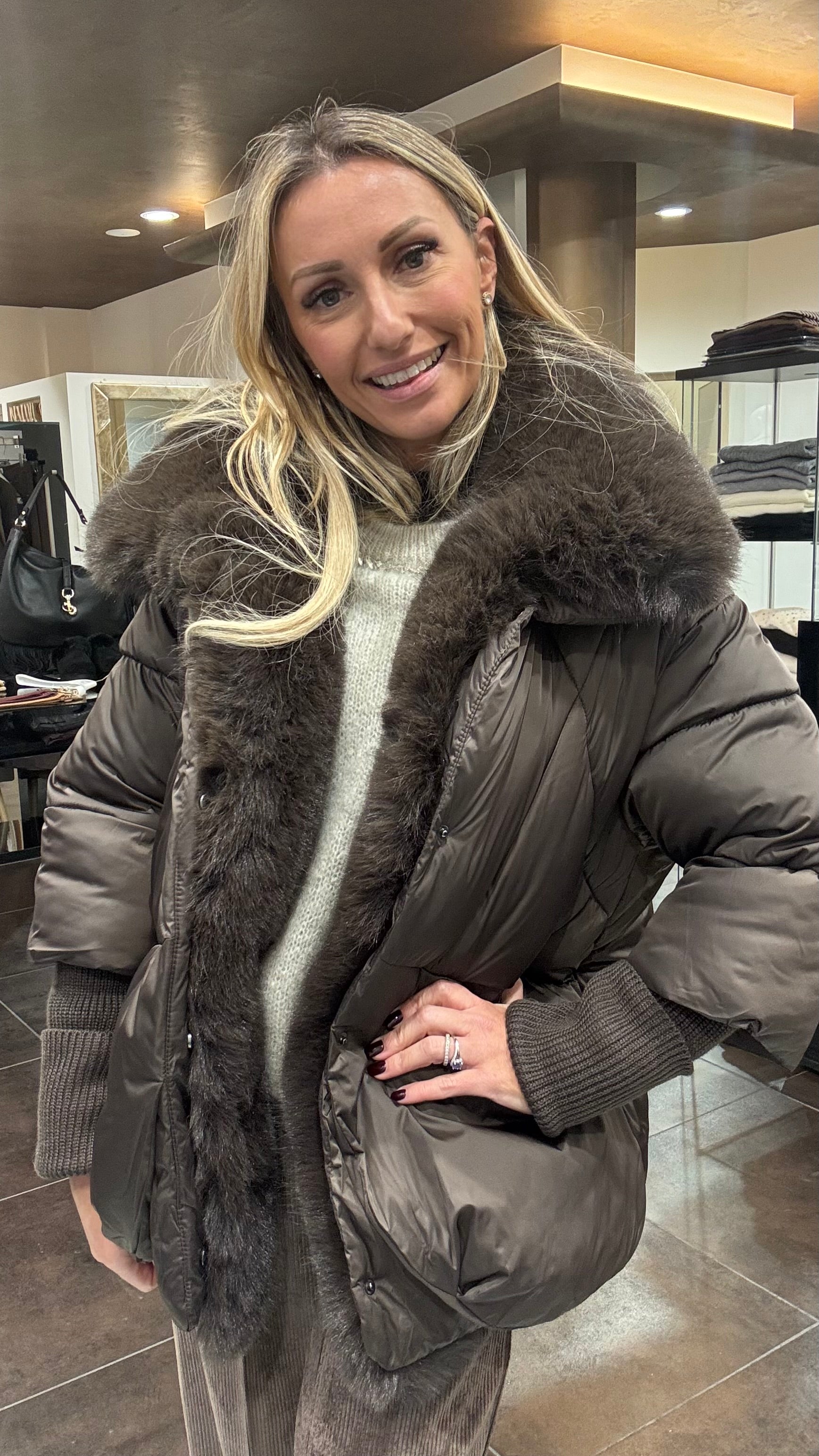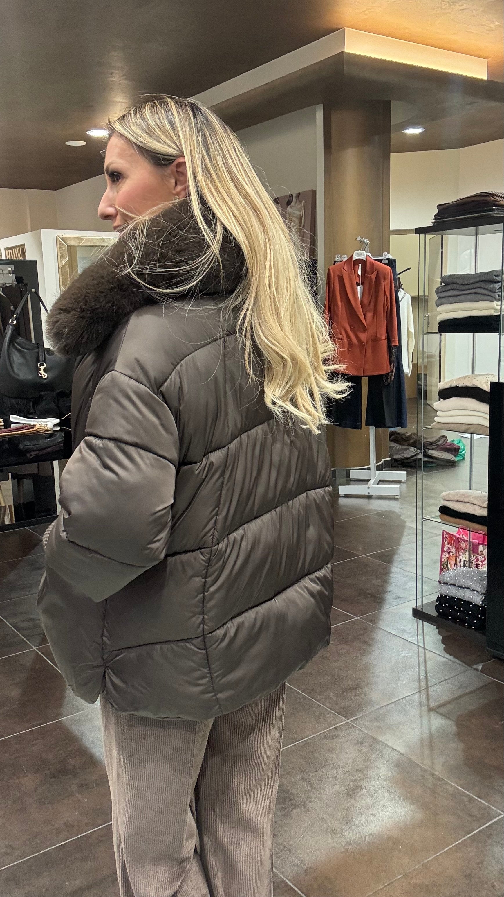 Giaccone imbottito con bordo e collo di pelo ecologico staccabile