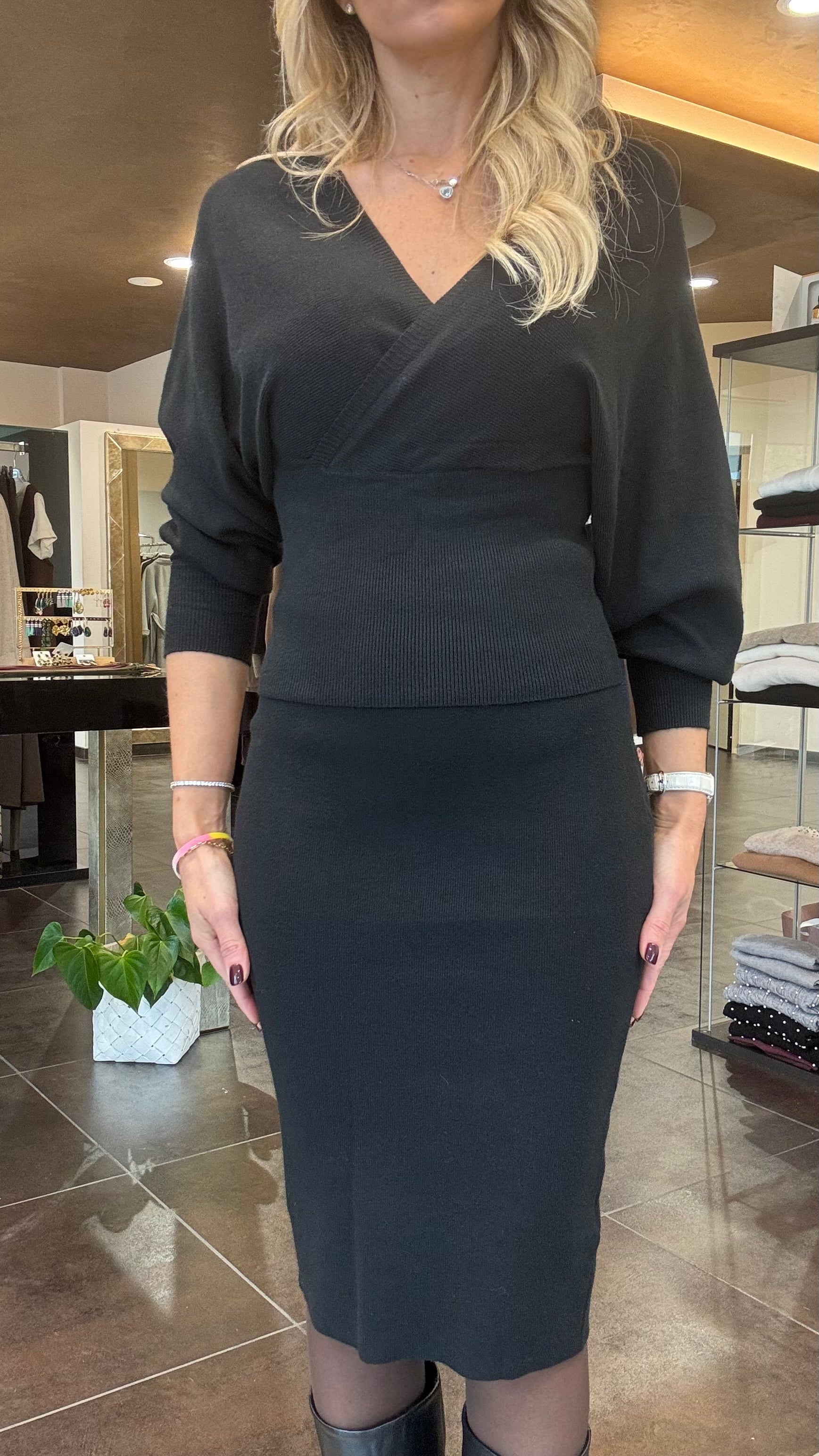Gonna a tubino con elastico in vita. Disponibile anche maglia coordinata. Taglia unica.