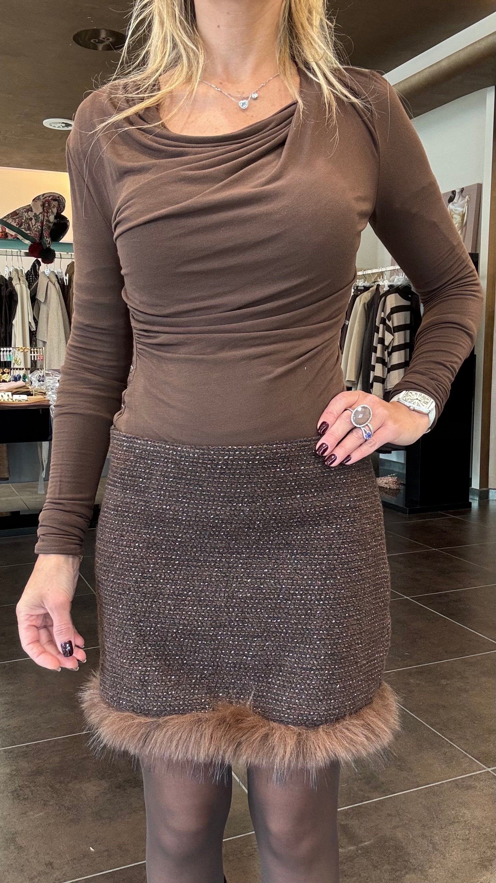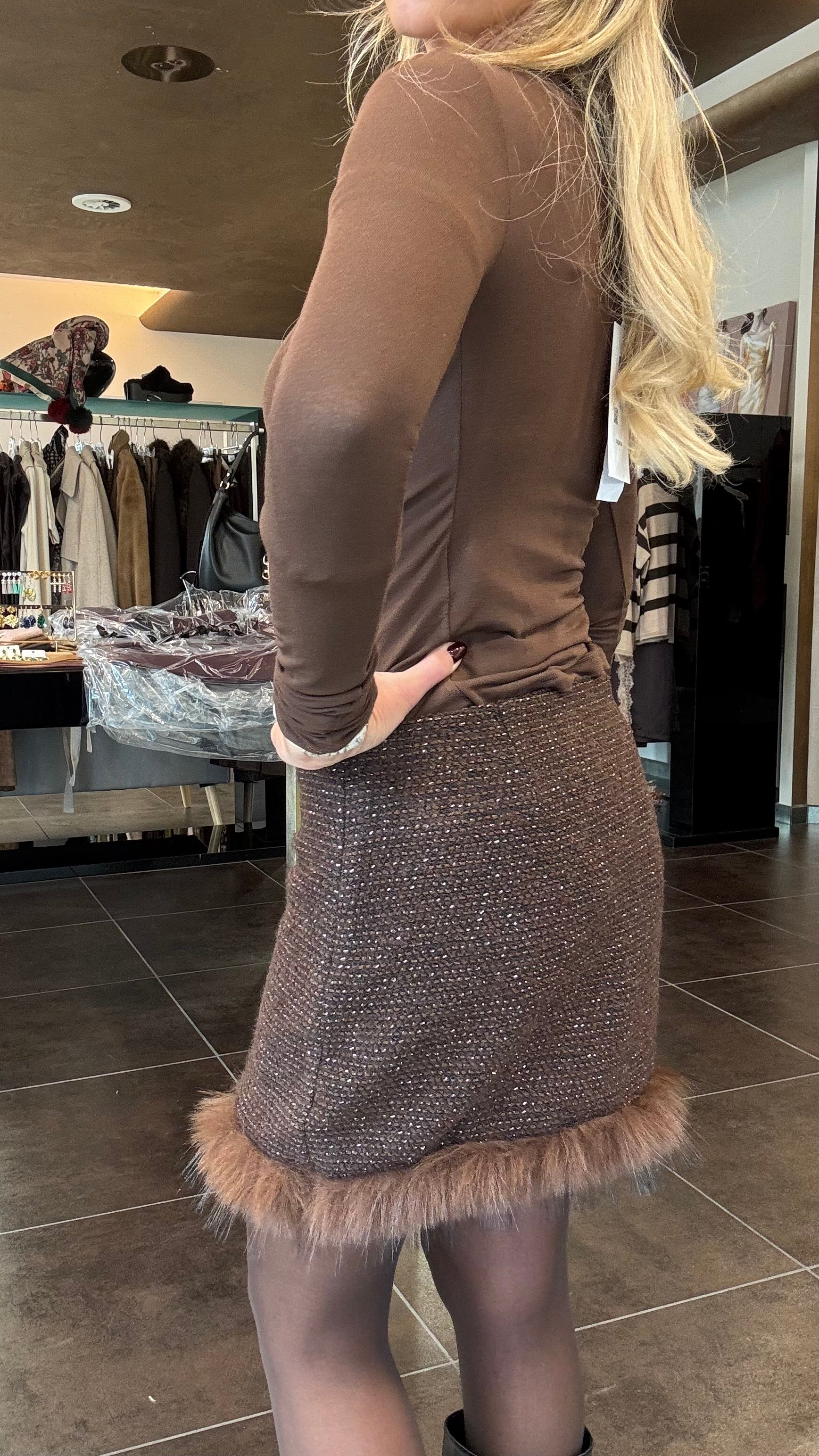 Gonna con effetto lavorato in maglia e pelo ecologico sul fondo e fili di lamè