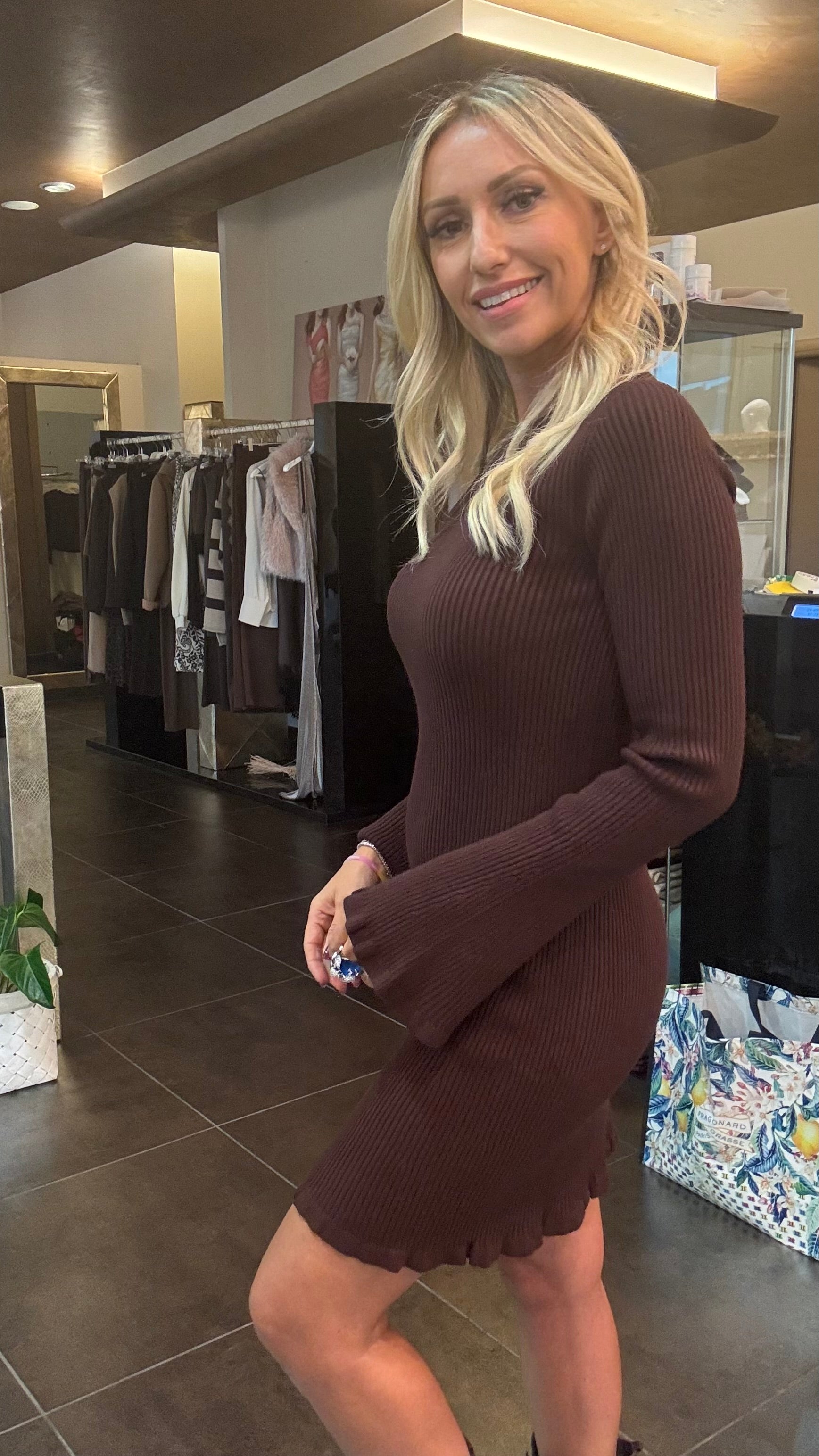 Abito a costine in maglina elasticizzata manica lunga taglia unica