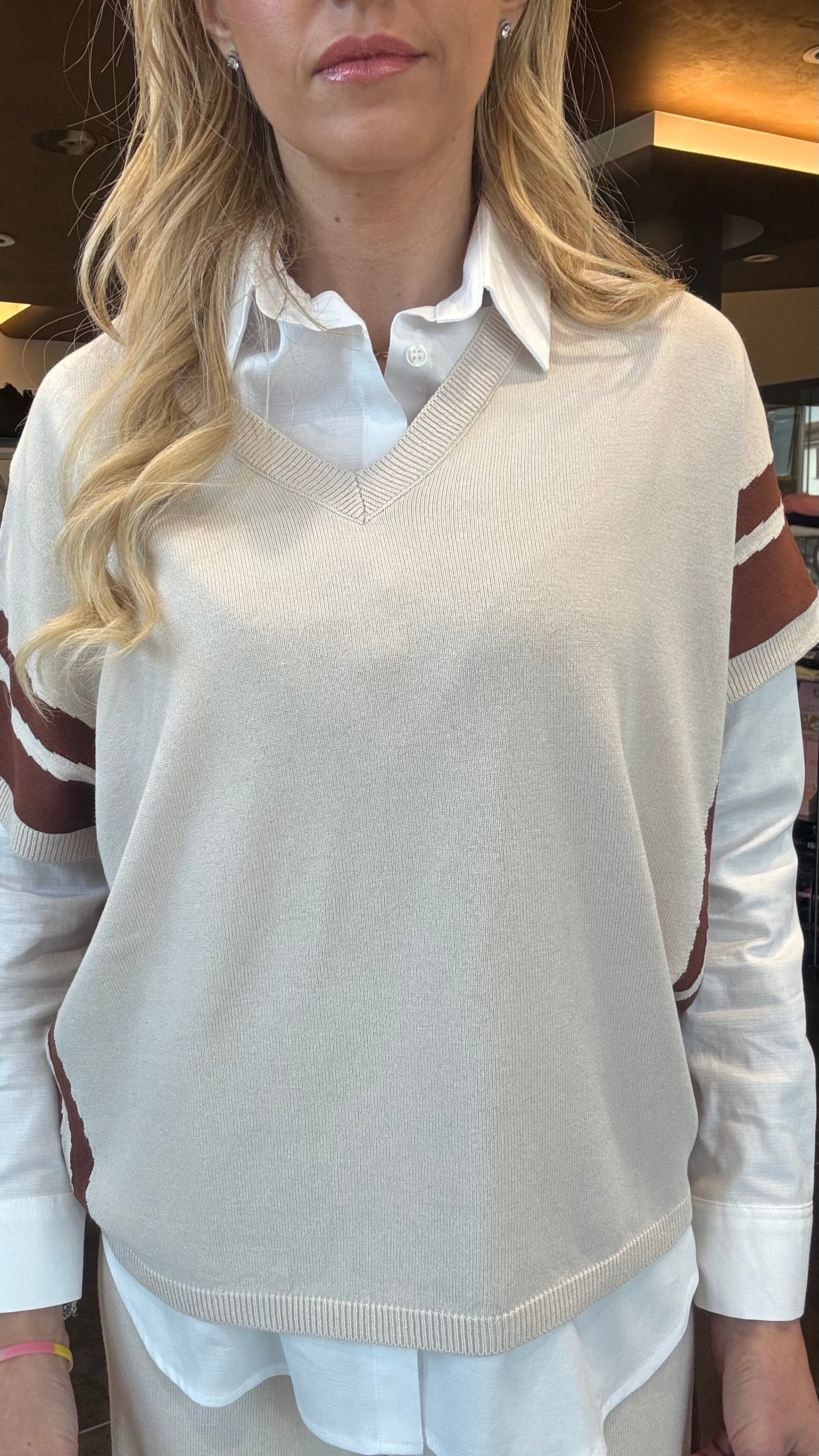Maglia mezza manica da portare da sola o sovrapposta, scollo a v