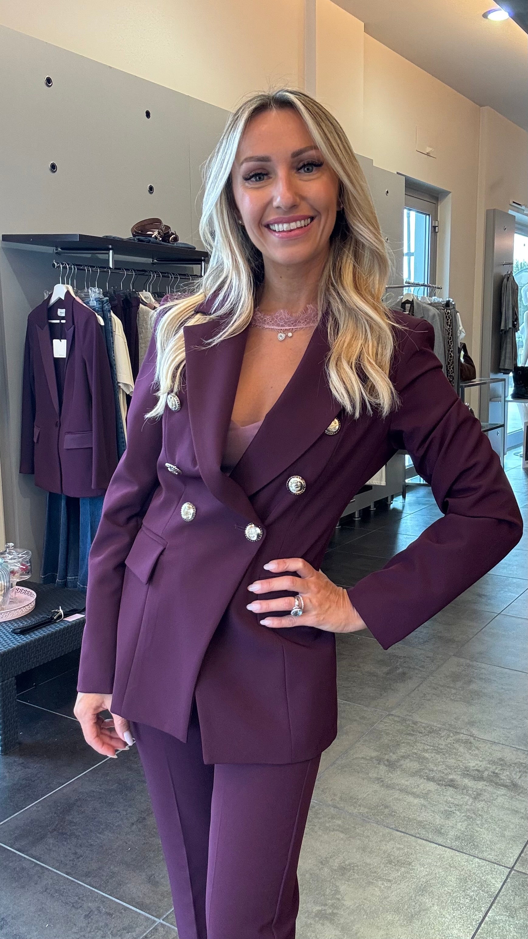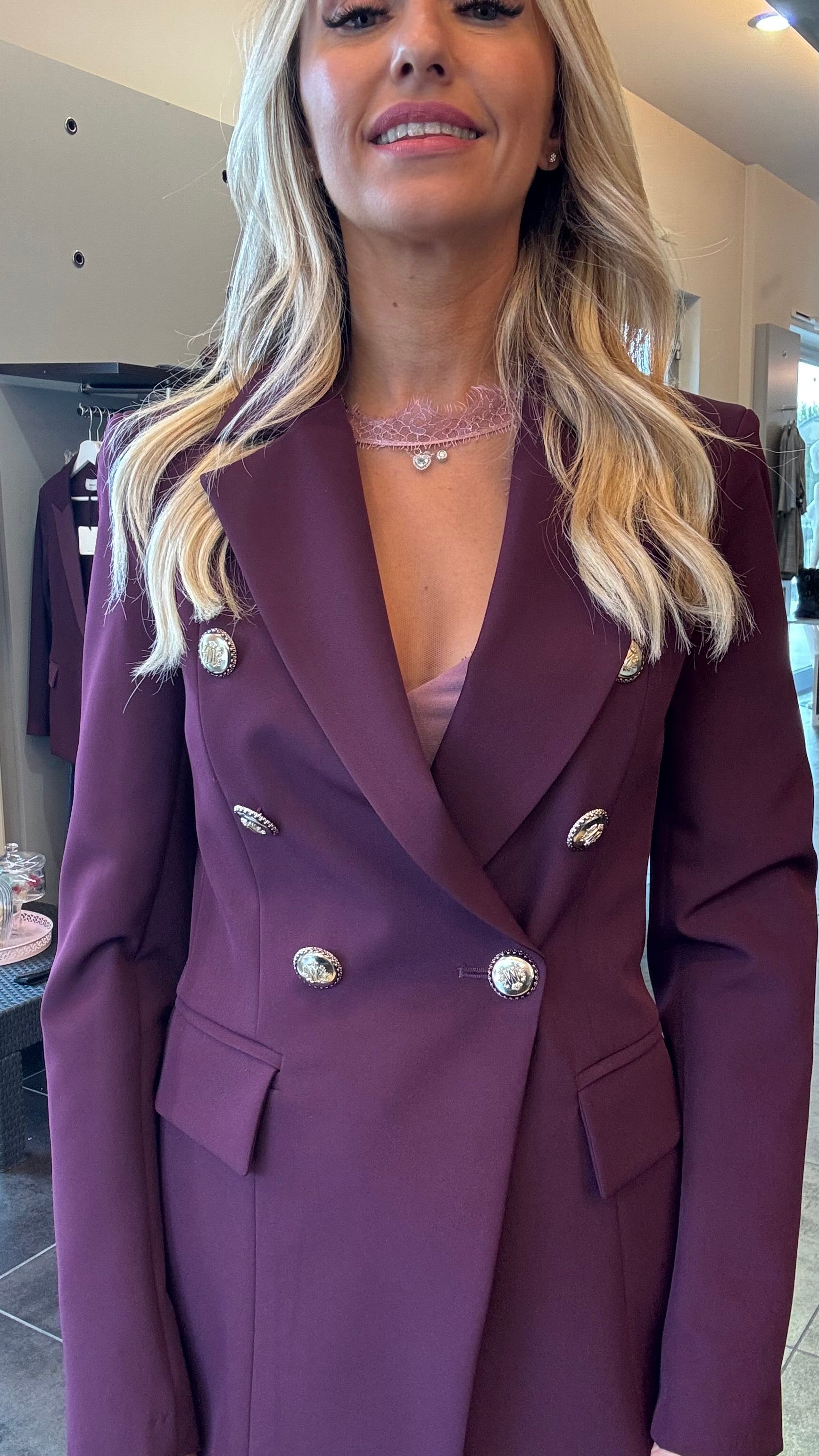 Giacca doppiopetto in tessuto tecnico con bottoni applicati.