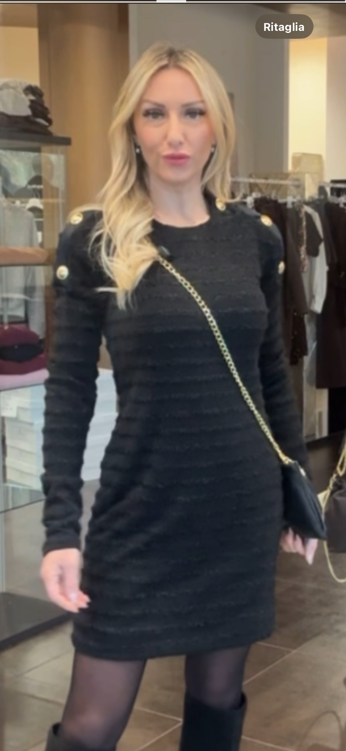 Aito corto con maniche lunghe e bottoni d'orati sulle spalle. Elasticizzato e foderato.