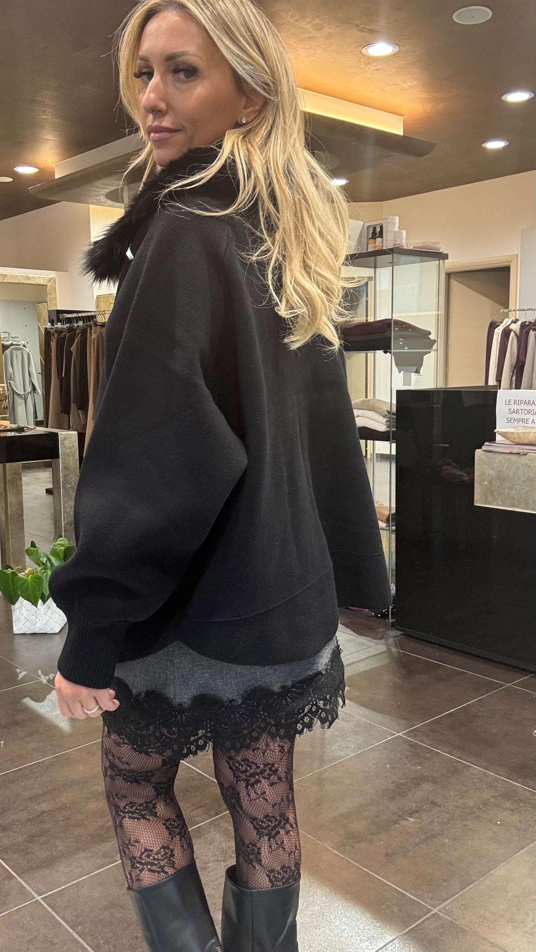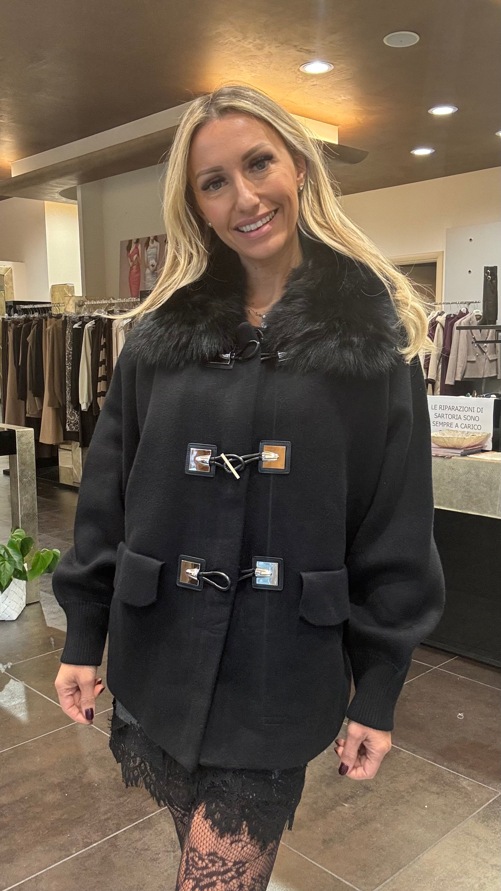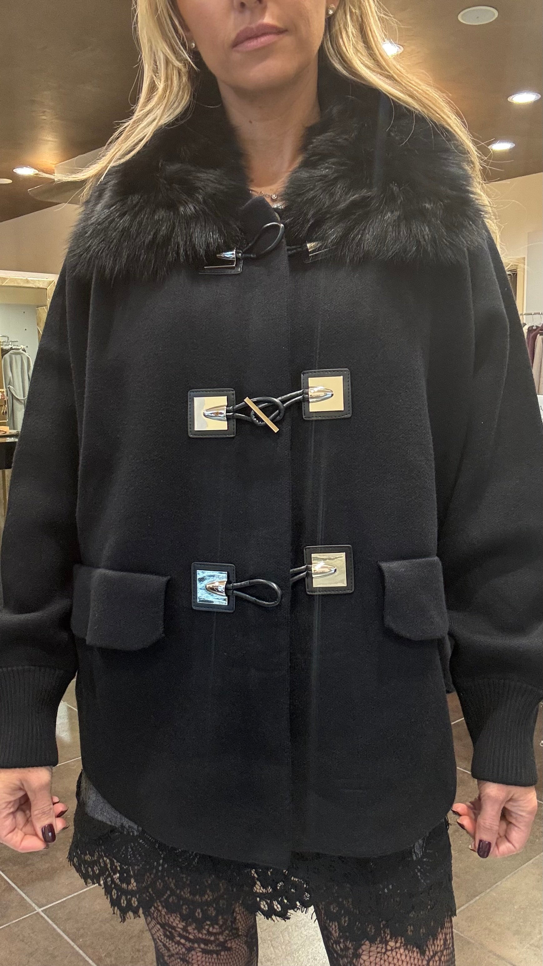 Montgomery con alamari, collo volpe ecologica staccabile