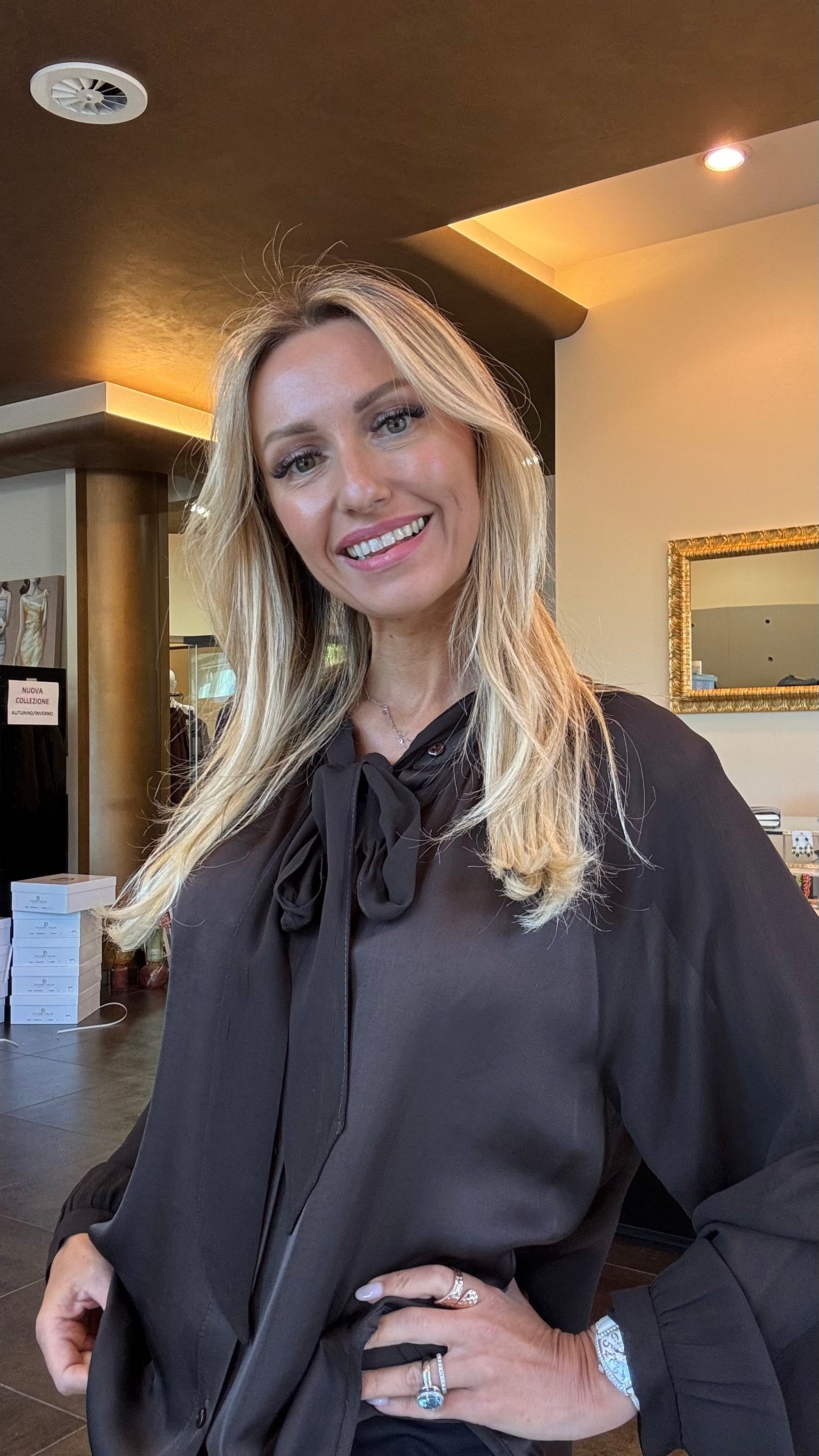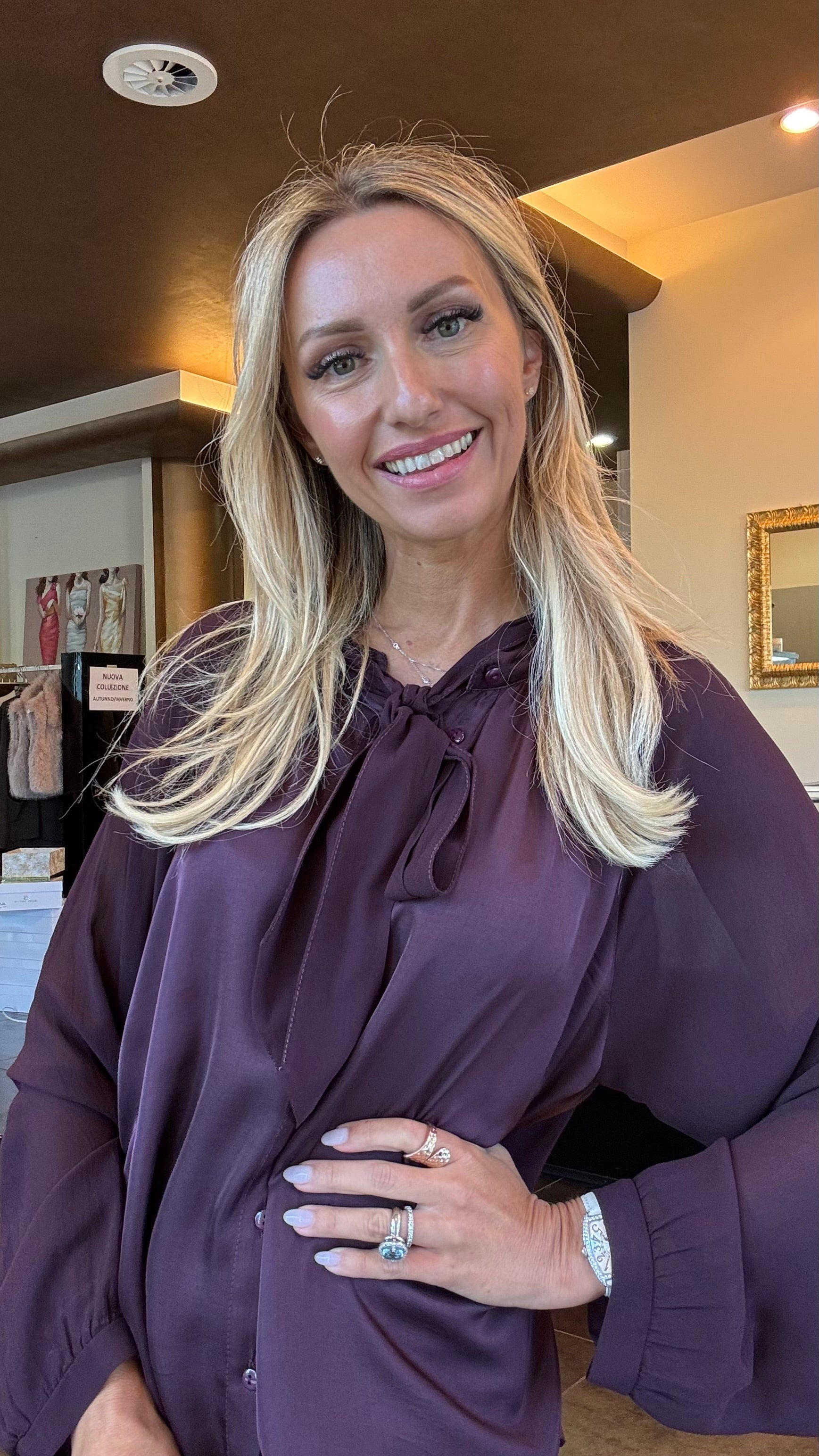 Camicia in viscosa, manica velata, nastro al collo removibile