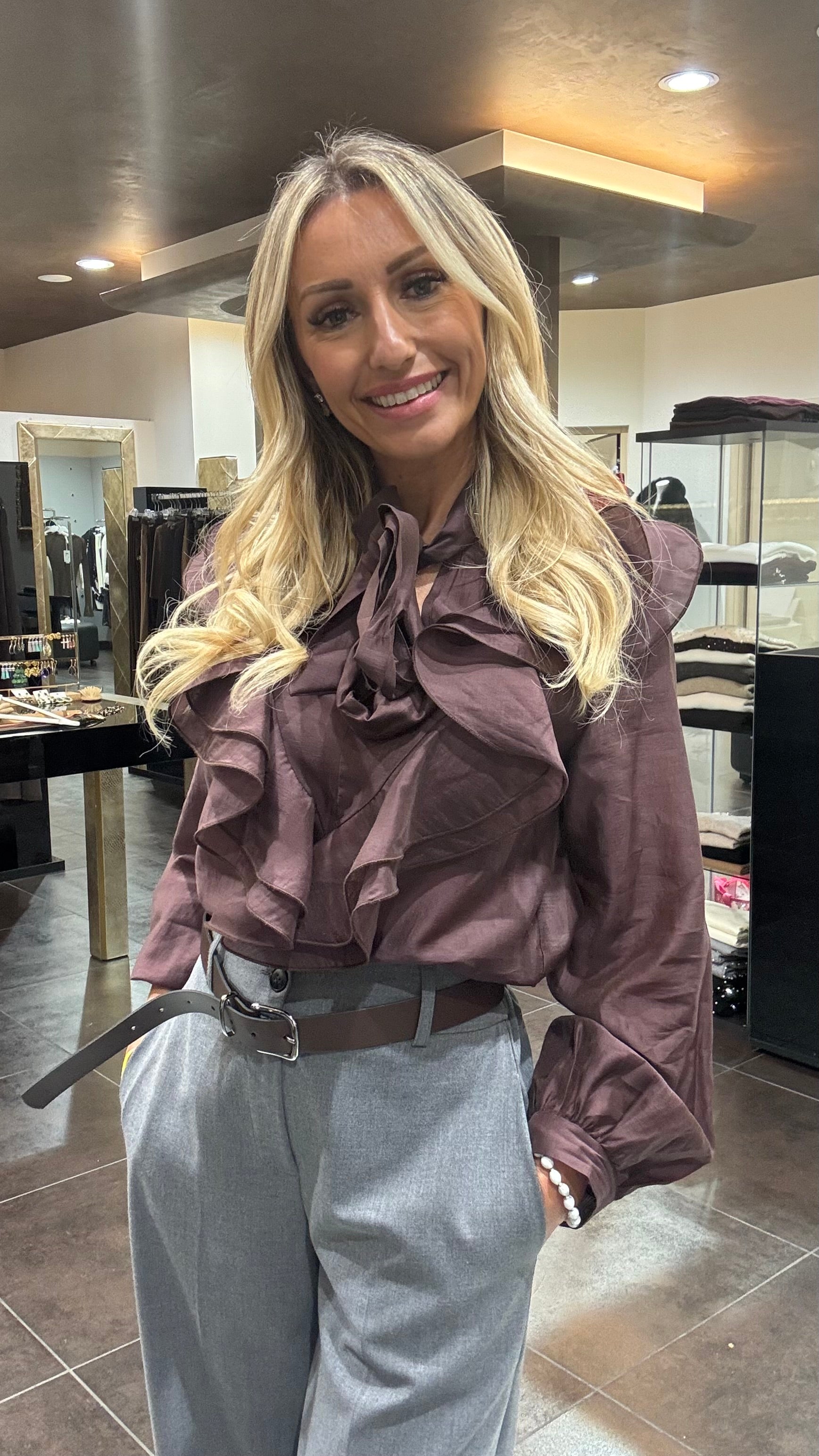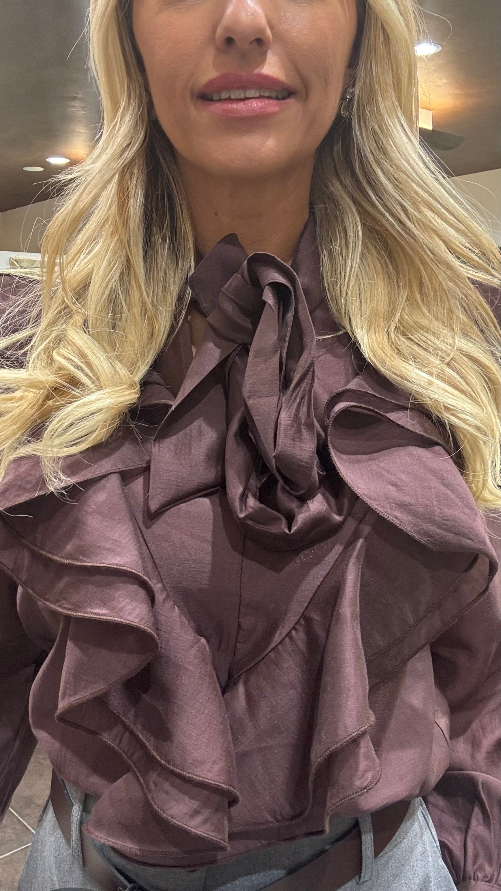 Camicia con rouges e fiocco in tessuto natutrale