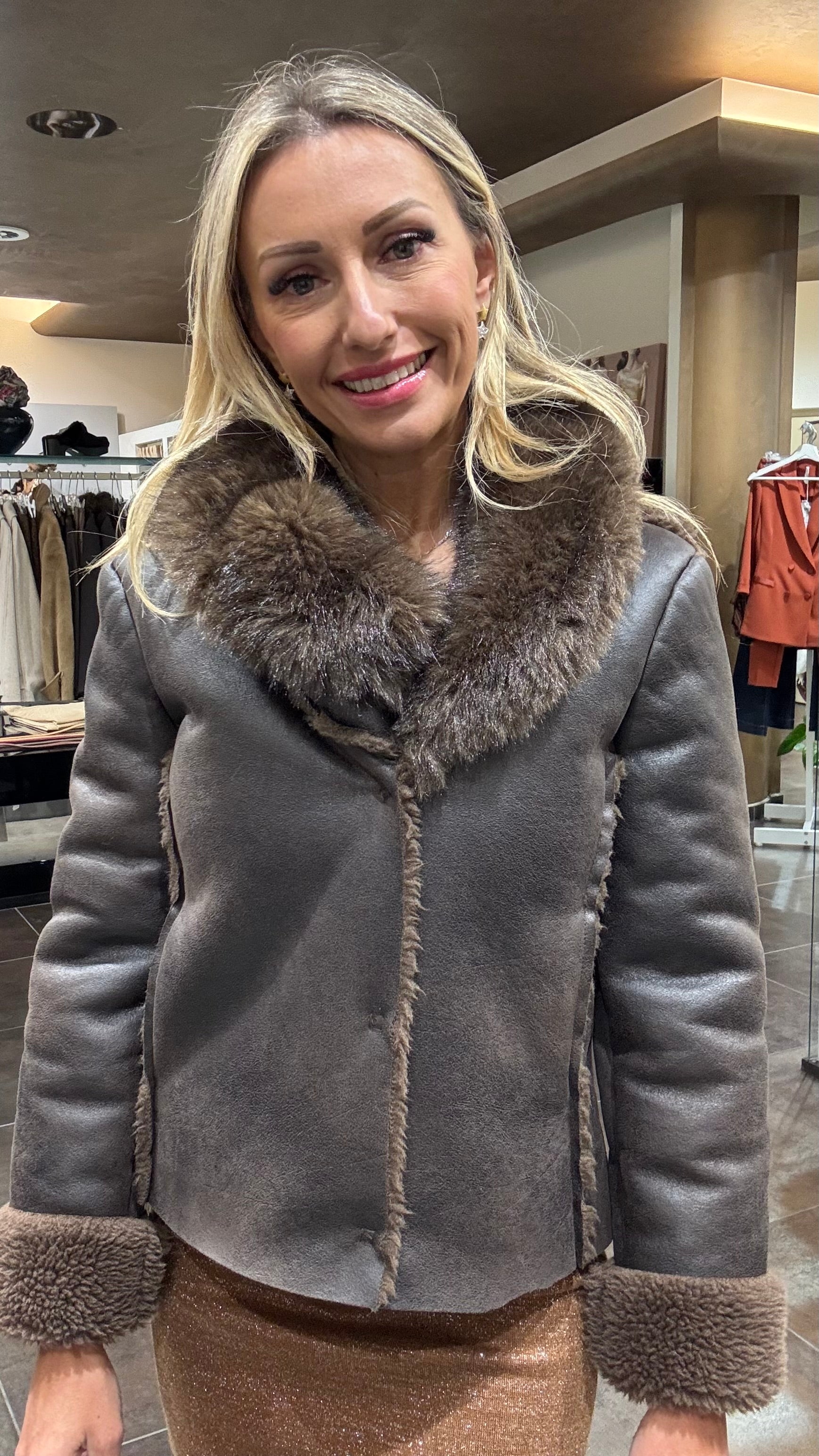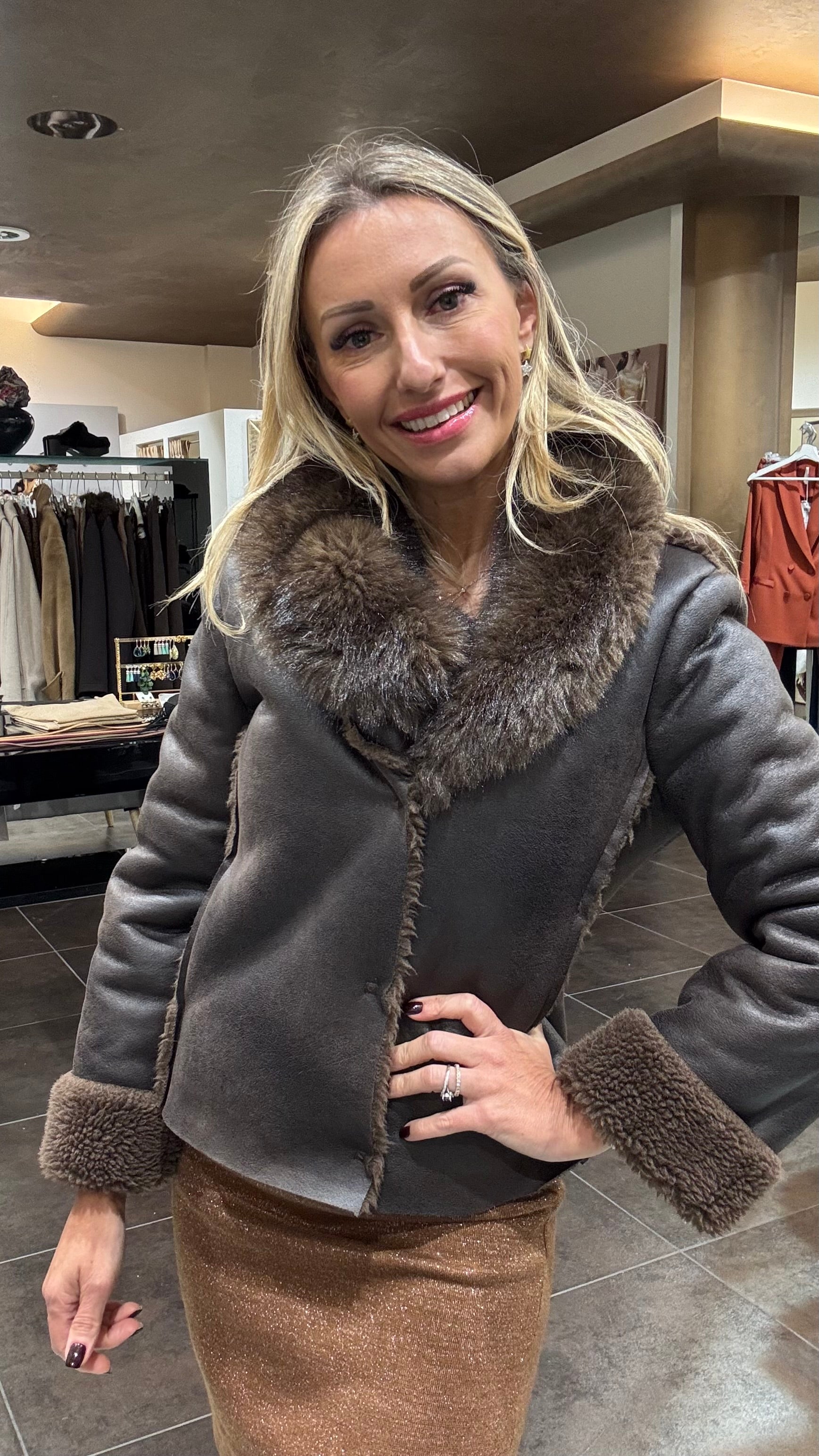 Montoncino ecologico, linea slim, collo asimmetrico, chiusura bottoni automatici