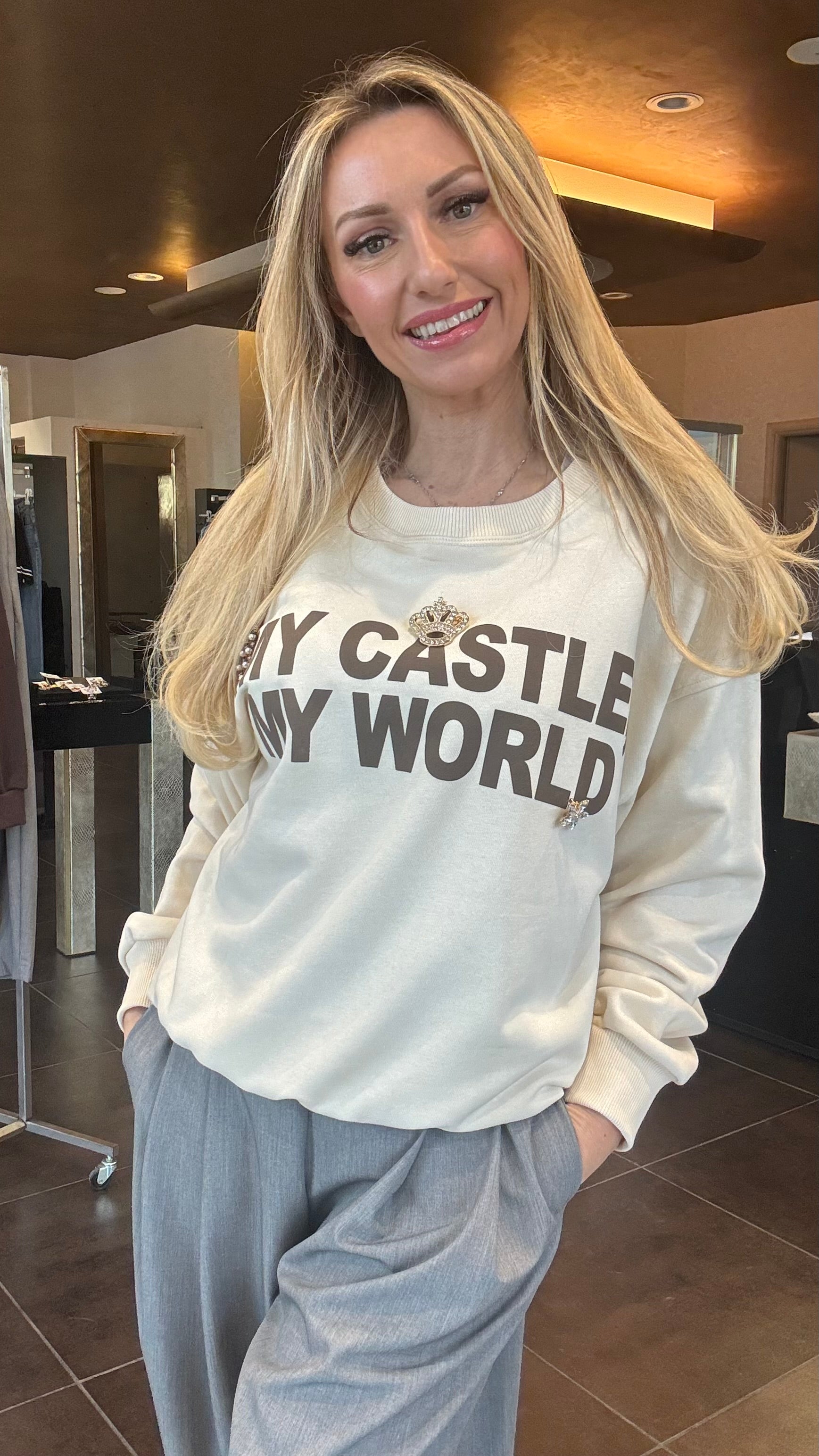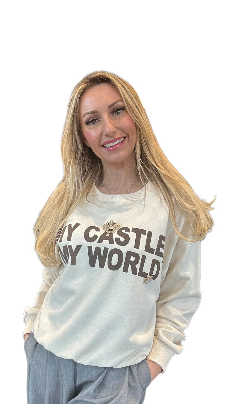 Felpa in cotone , scritta a contrasto stampata, spille removibili